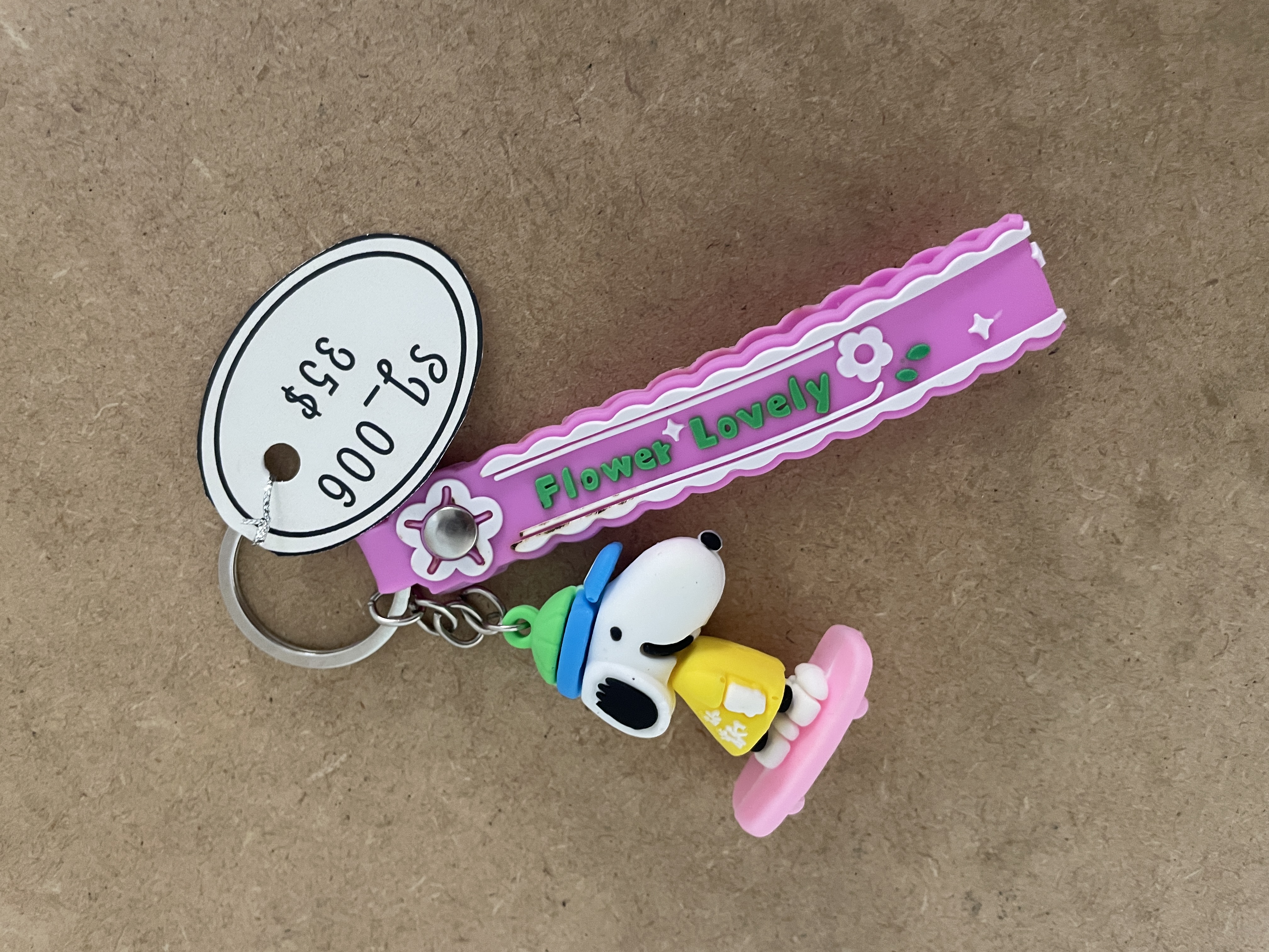Llavero en forma de snoopy con patineta su material ligero de goma lo hace ideal para bolsos, llaves o mochilas, disponle en distintos colores
