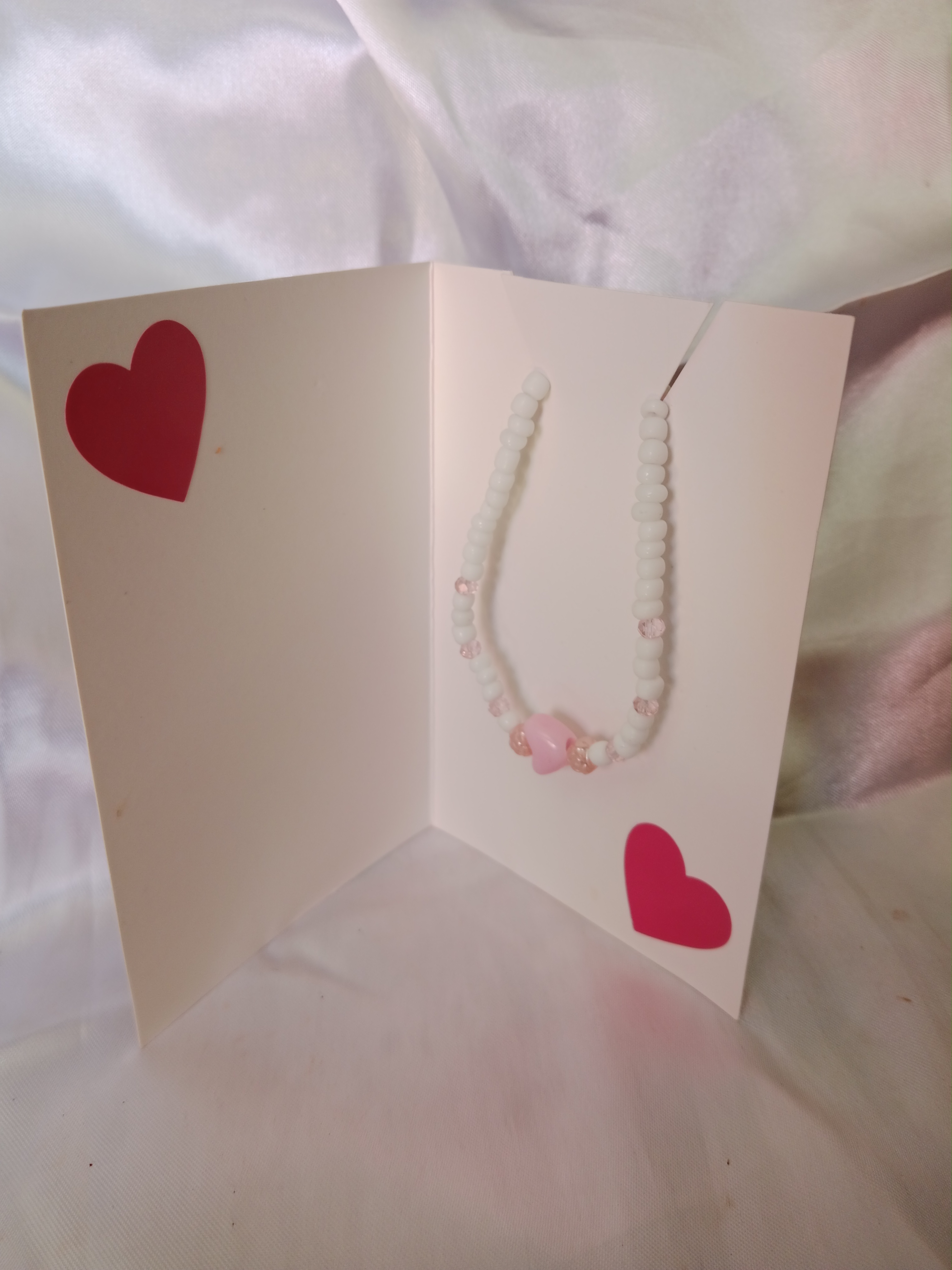 Pulsera con corazón rosa y blanco