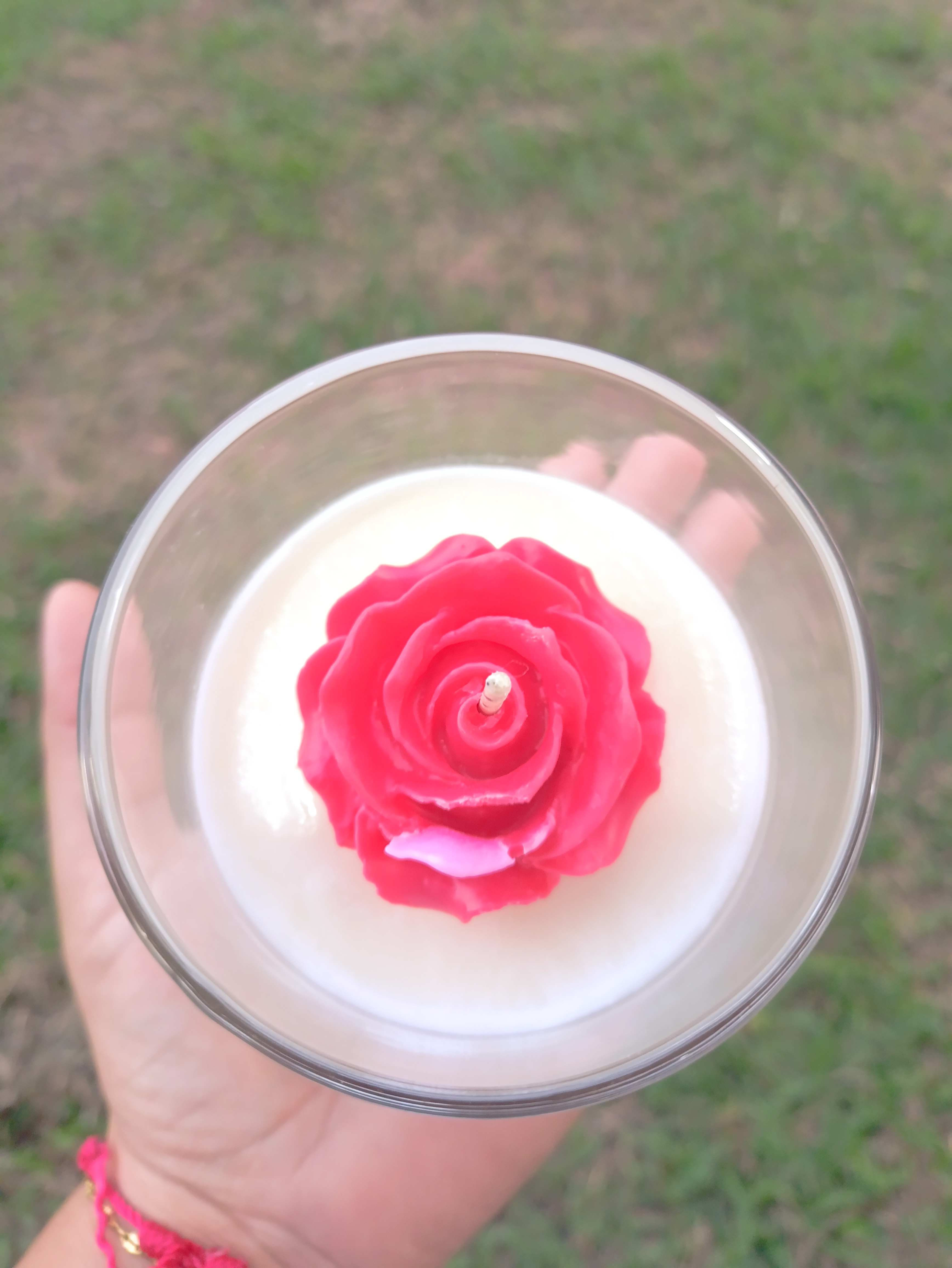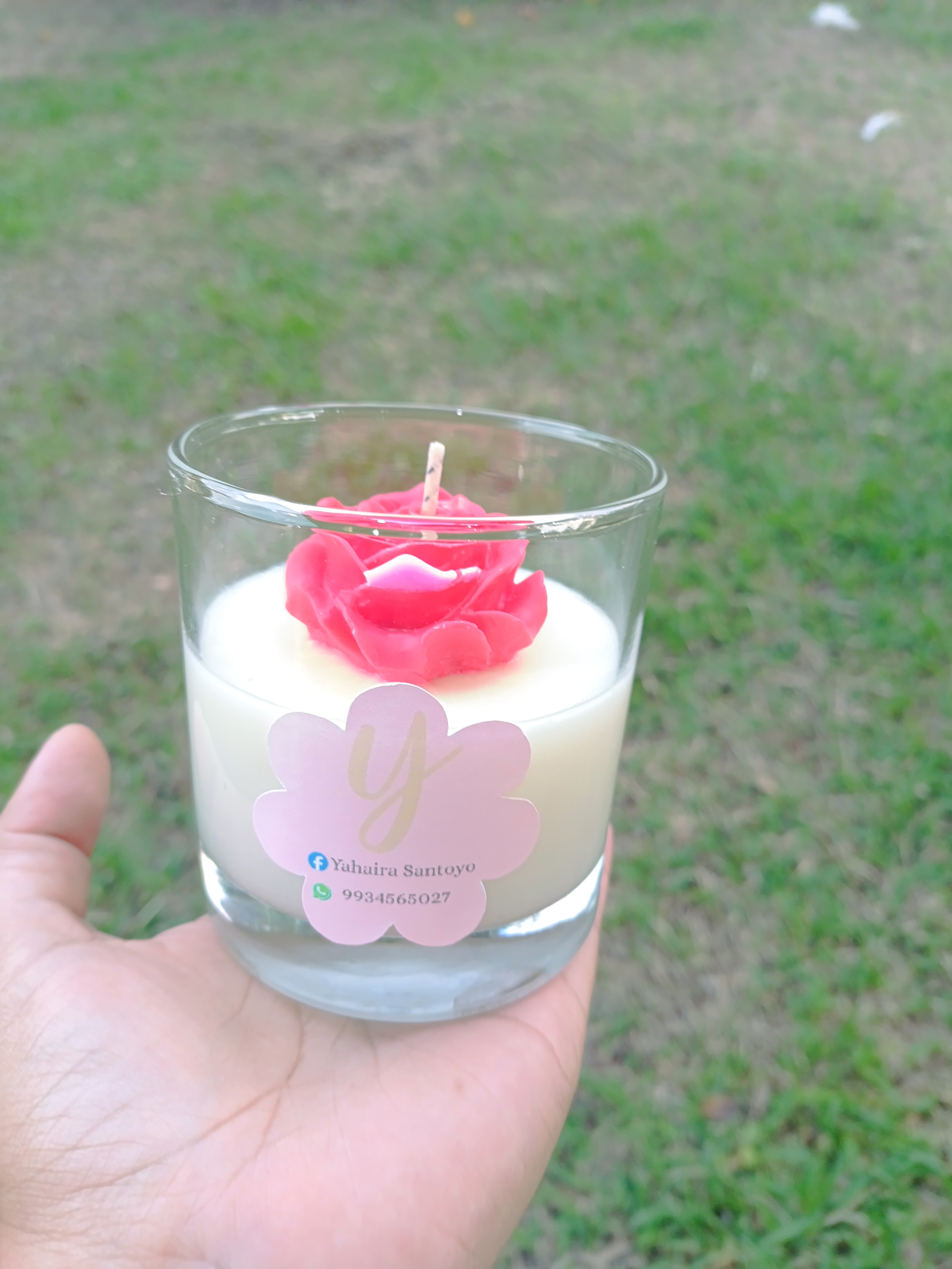 Vaso de cristal con 270 gramos de cera de soya con olor a Copal, decorado con una rosa roja
